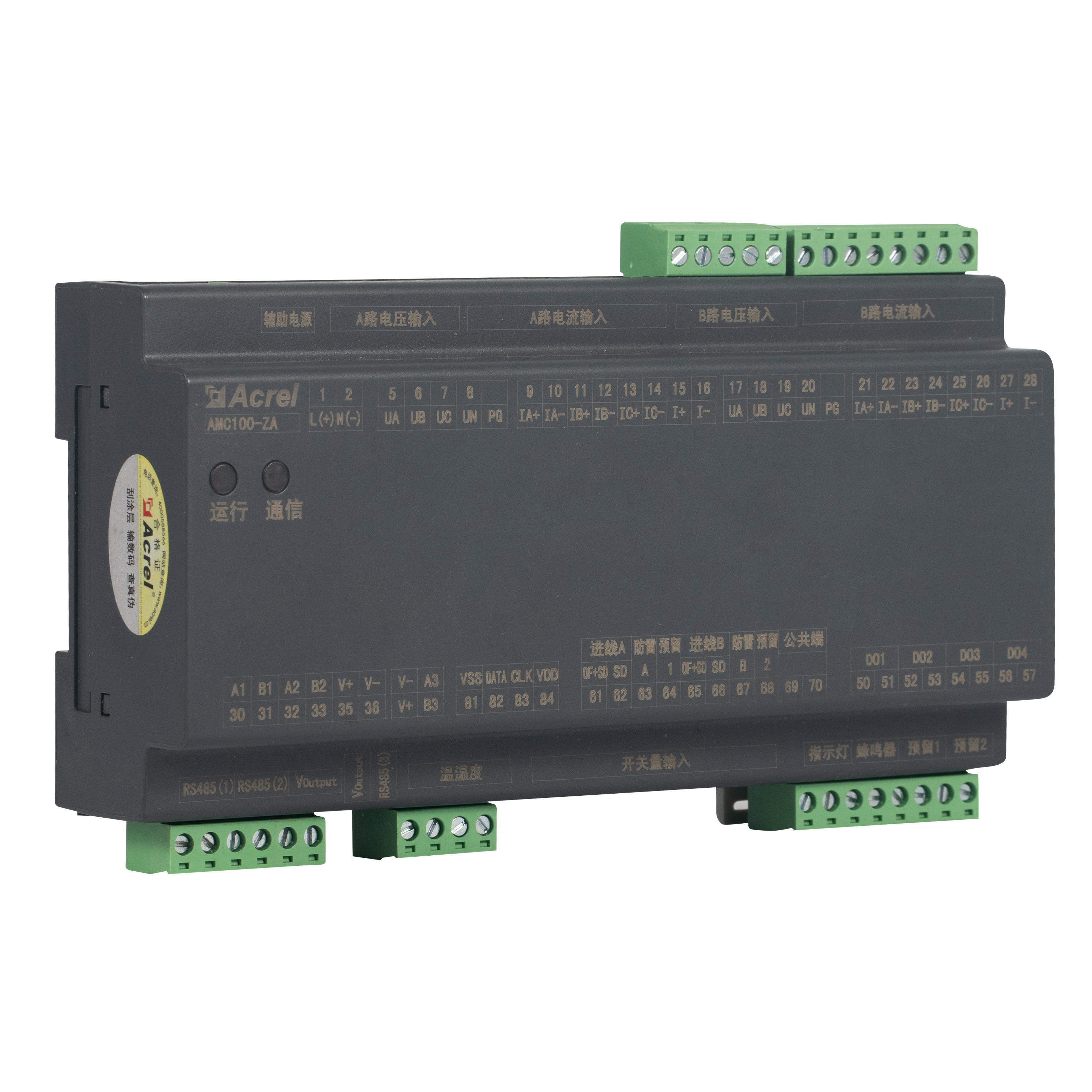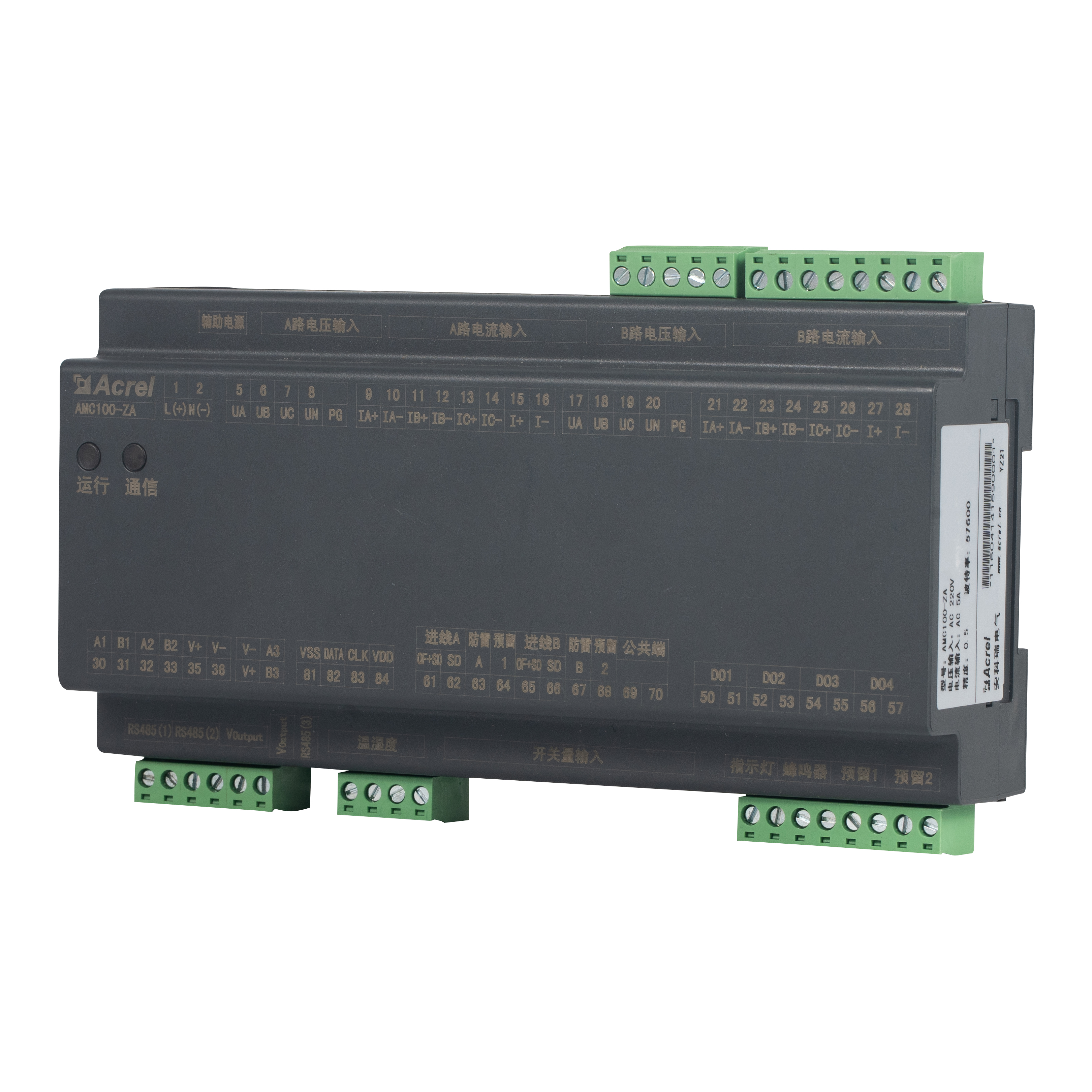 AMC100-ZA est Acrel DIN-rail AC praecisio potentiae-distributionis vigilantia unitas machinalis pro servo centri tormentorum notitia. Simul incedit plenas parametris electricas A B duplices tres phases pascens, circuitus 192 exitus, 8 DI / 4 DO status puncta, 2 canales lacus, 1 temperatura-humiditas sensorem et 63 harmonicas. Tres RS485 Modbus-RTU portus dabunt inconsutilem BMS/DCIM integrationem. Foedus 180 mm habitationum, ±0.5% accuratio, liminum per- ductus terrorem, et soni-levis monitus energiae vastitatis et downtime exacturus, eam faciens scalabilem cor viridis e notitia-medii AC busviali vel PDU solutionis vigilantiae..